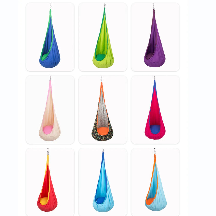 🌈 100% Cotton Canvas Kids Pod Swing Seat – Sensory Hammock 🌈