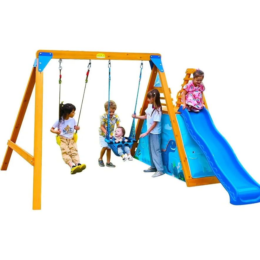 Transform your backyard into a thrilling adventure zone with our Playground Swing Sets for Backyard. Designed for endless outdoor fun, this wooden playground set features 2 swings, a big wave slide, and a climbing wall, making it the perfect addition to your children’s playtime experience. Ideal for families looking to create a vibrant outdoor play area, our kids outdoor playset guarantees hours of enjoyment and fosters physical activity.